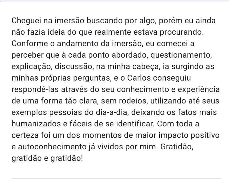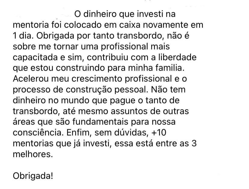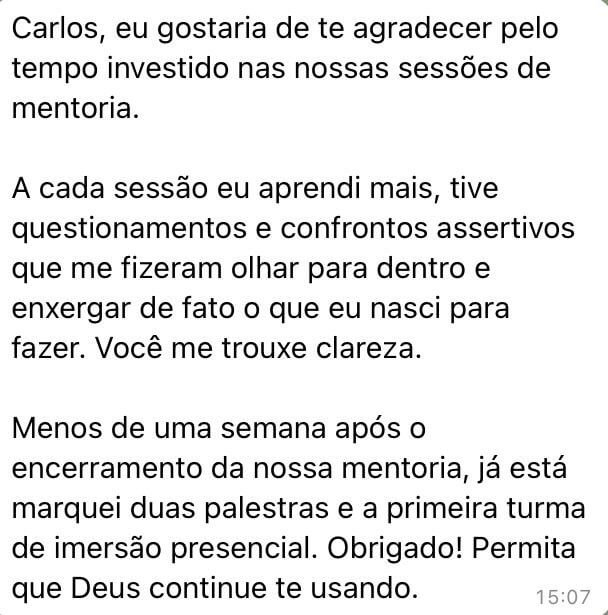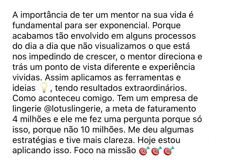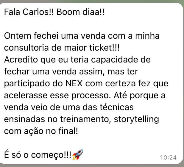 Já mentorei individualmente mais de 88 pessoas e impactei mais de 3.000 em treinamentos e palestras por todo o Brasil. Fundei o Club NEX, um espaço voltado à construção de grandes negócios e conexões de excelência.